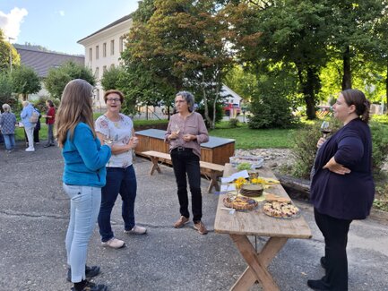 (cd) Der Frauenbund und die Landfrauen haben gemeinsam einen Abend organisiert unter dem Motto "öbbis zäme". Wir haben uns auf dem Spielplatz des Kindergartens in Wittnau getroffen und einen interessanten und lockeren Abend verbracht. Der Blick ging jedoch immer nach oben zum Himmel, denn das Wetter war recht unbeständig. Doch der da oben hatte es gut mit uns gemeint und uns keinen Regen geschickt.