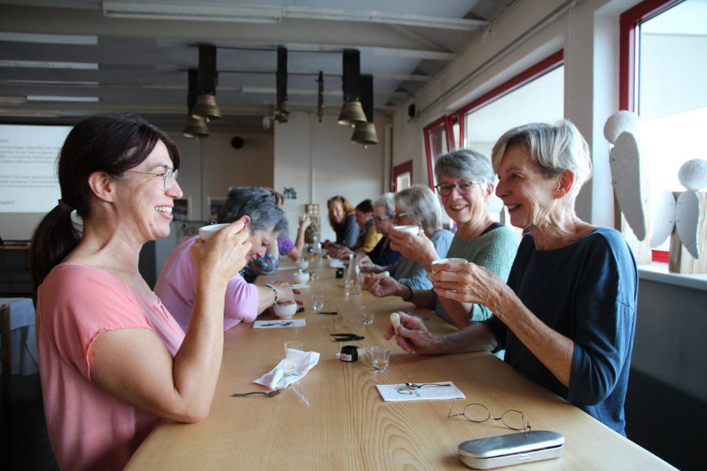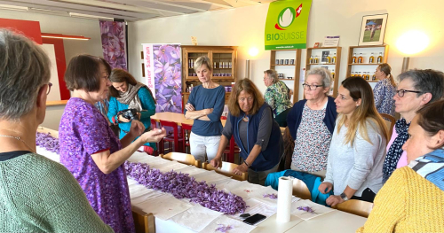 Für uns geht der Vortrag weiter. Tagora verarbeitet einen Teil der Blüten in Getränke, Senf, Gelée oder Kosmetikprodukte. Nach einem reichhaltigen Dessert und vielen interessanten Informationen verabschieden wir uns von Claudia Bossard und ihrem Team. Die Fahrt nach Hause steht an, natürlich mit einem kleinen Abstecher in die Natur.