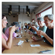 Damit das "Miteinander" etwas in Schwung kam, hatten wir drei Themen bekommen, zu denen wir uns in Gruppen austauschen konnten. Es entstanden sehr interessante Voten und Gespräche, die dann aber schlussendlich in ein gemütliches Zusammensein übergingen. Die Gespräche waren genau so vielseitig wie das Buffet. Die Stimmung war locker, die Teilnehmer gesprächig. Der Abend war lang und gemütlich. Die Gruppe hatte sich erst aufgelöst, als es langsam kühler und dunkler wurde.Unterm Strich ein sehr gelungener Anlass, den man regelmässig abhalten müsste.
