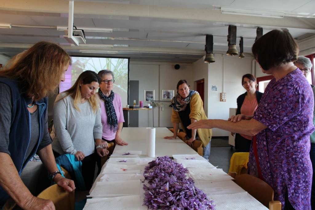 Das haben sich am 10. Oktober dreizehn Landfrauen auch gesagt und sind nach Aristau gefahren, ins Land des Schweizer Safrans. Wir haben nicht schlecht gestaunt, als wir erfahren haben, dass hier tatsächlich Safran angebaut und verarbeitet wird. Silvia Bossard, die Gründerin und Geschäftsführerin von Tagora, führt uns ins Reich des Safrans ein. Seit 2007 baut sie mit grossem Erfolg Safran an. Anhand von Bildern erklärt sie uns den Unterschied von echtem und unechtem Safran, zeigt uns auf, in welchen Ländern der Safran normal angebaut wird und wieso der Aargauer Safran so speziell ist.
