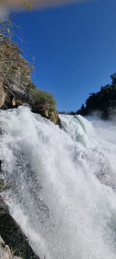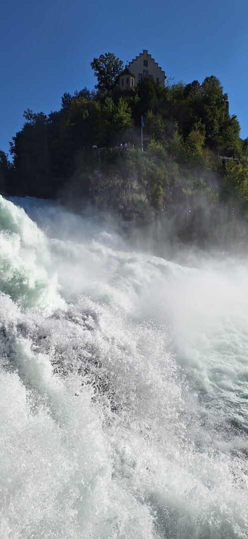 Die Zeit zur freien Verfügung haben die Landfrauen dazu genutzt, die Stadttor-Inschrift «Lappi tue d’Augen uf» aufzusuchen oder eine leckere Glace zu geniessen. Ein weiteres Highlight unseres Tagesausflugs bildete die Felsenfahrt am Rheinfall. Es war sehr eindrücklich, mitten in diesem atemberaubenden Naturspektakel stehen zu dürfen. Wir konnten die Gischt des Wassers auf der Haut spüren und den durch die Einstrahlung der Sonne entstandenen Regenbogen beobachten. Zum Abschluss des wunderbaren und sommerlichen Herbsttages durften wir in einem Weingut in Osterfingen einkehren und erneut eine kalte Platte zu herrlichem Wein geniessen. Müde aber mit schönen Erinnerungen im Gepäck wurden wir von unserem privaten Chauffeur Paul zuverlässig und sicher nach Hause gebracht.