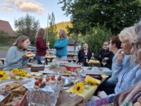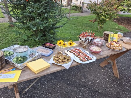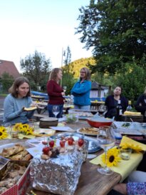 (cd) Der Frauenbund und die Landfrauen haben gemeinsam einen Abend organisiert unter dem Motto "öbbis zäme". Wir haben uns auf dem Spielplatz des Kindergartens in Wittnau getroffen und einen interessanten und lockeren Abend verbracht. Der Blick ging jedoch immer nach oben zum Himmel, denn das Wetter war recht unbeständig. Doch der da oben hatte es gut mit uns gemeint und uns keinen Regen geschickt.